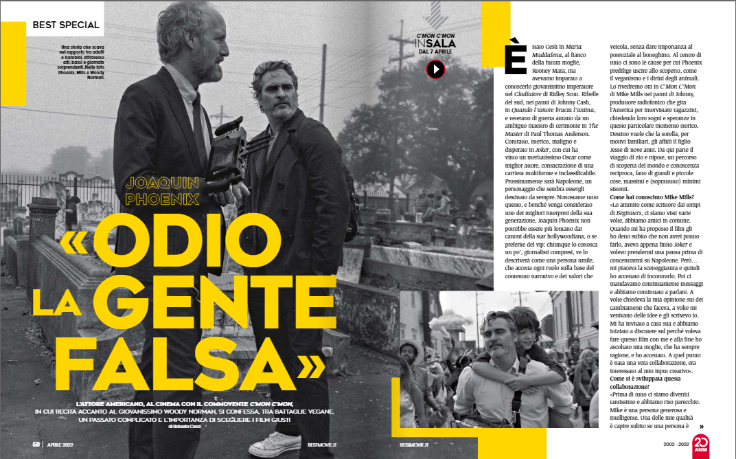 Traduzimos a entrevista com Joaquin Phoenix que saiu na revista Italiana Best Movie, edição de Abril.