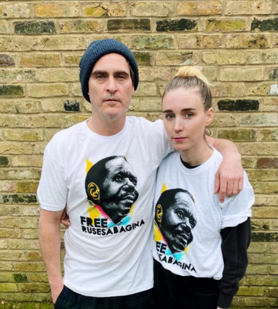 Joaquin Phoenix e Rooney Mara se juntaram a outros artistas na campanha “Free Paul Rusesabagina”, lançada pela Represent.com.