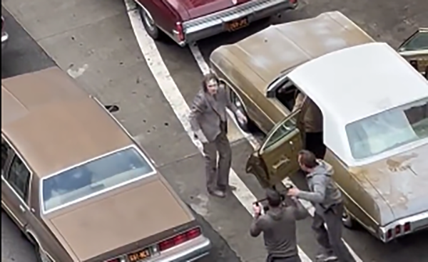 O filme Joker: Folie à Deux está tendo filmagens externas em Los Angeles e hoje foi divulgado o primeiro vídeo de Joaquin Phoenix no set. Ele aparece de terno cinza, fugindo de dois homens.