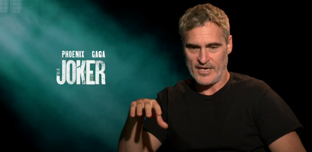 Joker: Folie à Deux Notícias Videos Vídeo: Nova entrevista para Paul McGuire Grimes By Aline / 22 de setembro de 2024 Como parte da divulgação de ‘Coringa: Delírio a Dois’, Joaquin Phoenix conversou com Paul McGuire Grimes sobre o filme. Share this… Facebook Pinterest Twitter Linkedin Post navigation Previous Joaquin Phoenix fez pegadinha com mãe de Harry Lawtey via FaceTimeNext Warner lança vídeo focado em Arthur Fleck